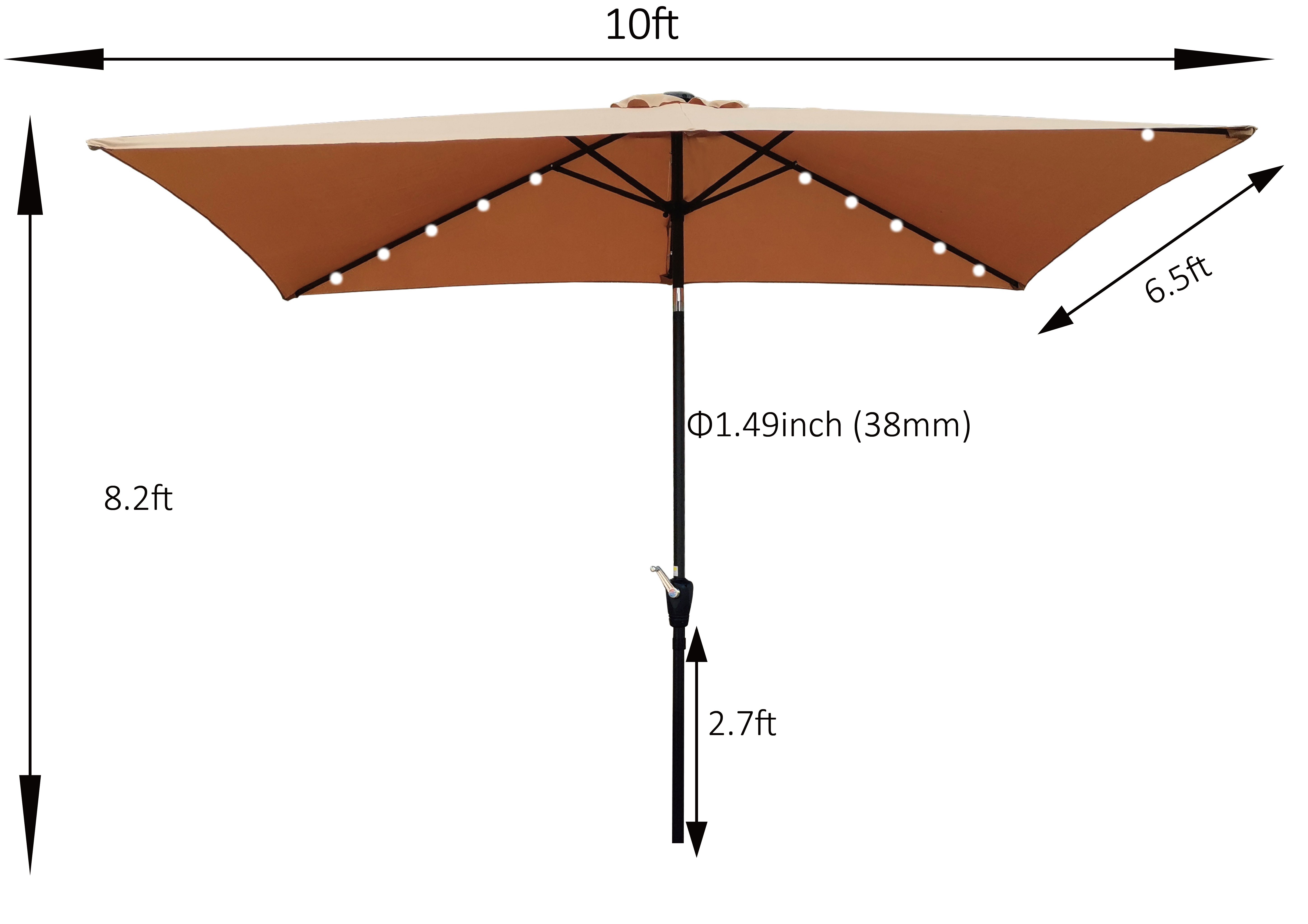Home > 10 x 6.5t Rectangular Patio Solar LED Lighted Outdoor Market Umbrellas with Crank & Push Button Tilt for Garden Shade Outside Swimming Pool RT