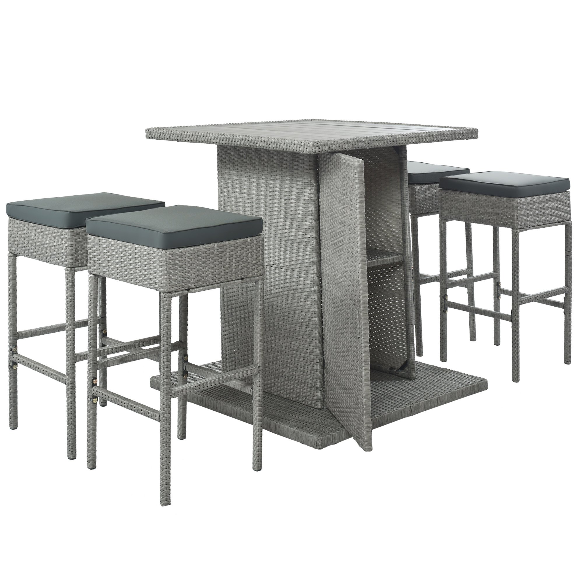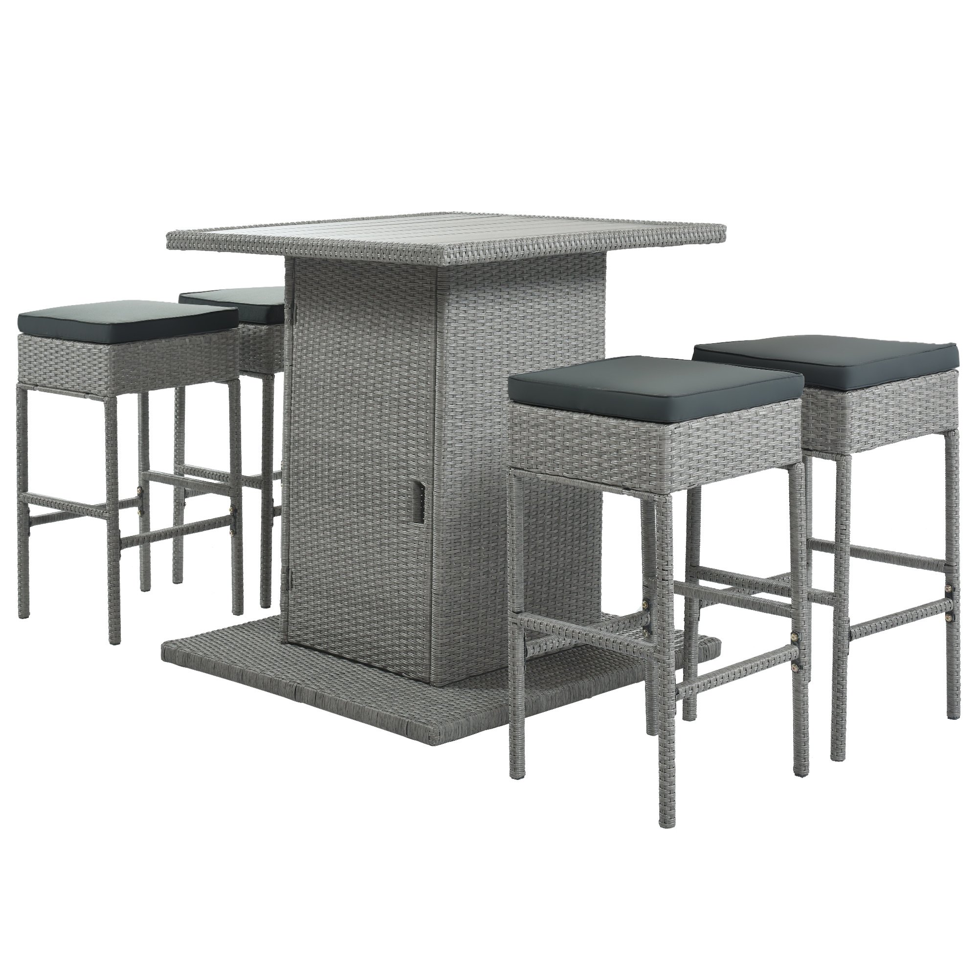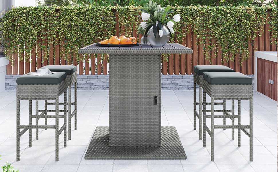 Include 1 square table and 4pcs stools, this counter height dining set perfects for any backyard or garden or poolside arrangement. Due to simple and minimalist style, this patio kitchen set is designed for not only dining with family but also entertaining guests while decorating your home with modernism.