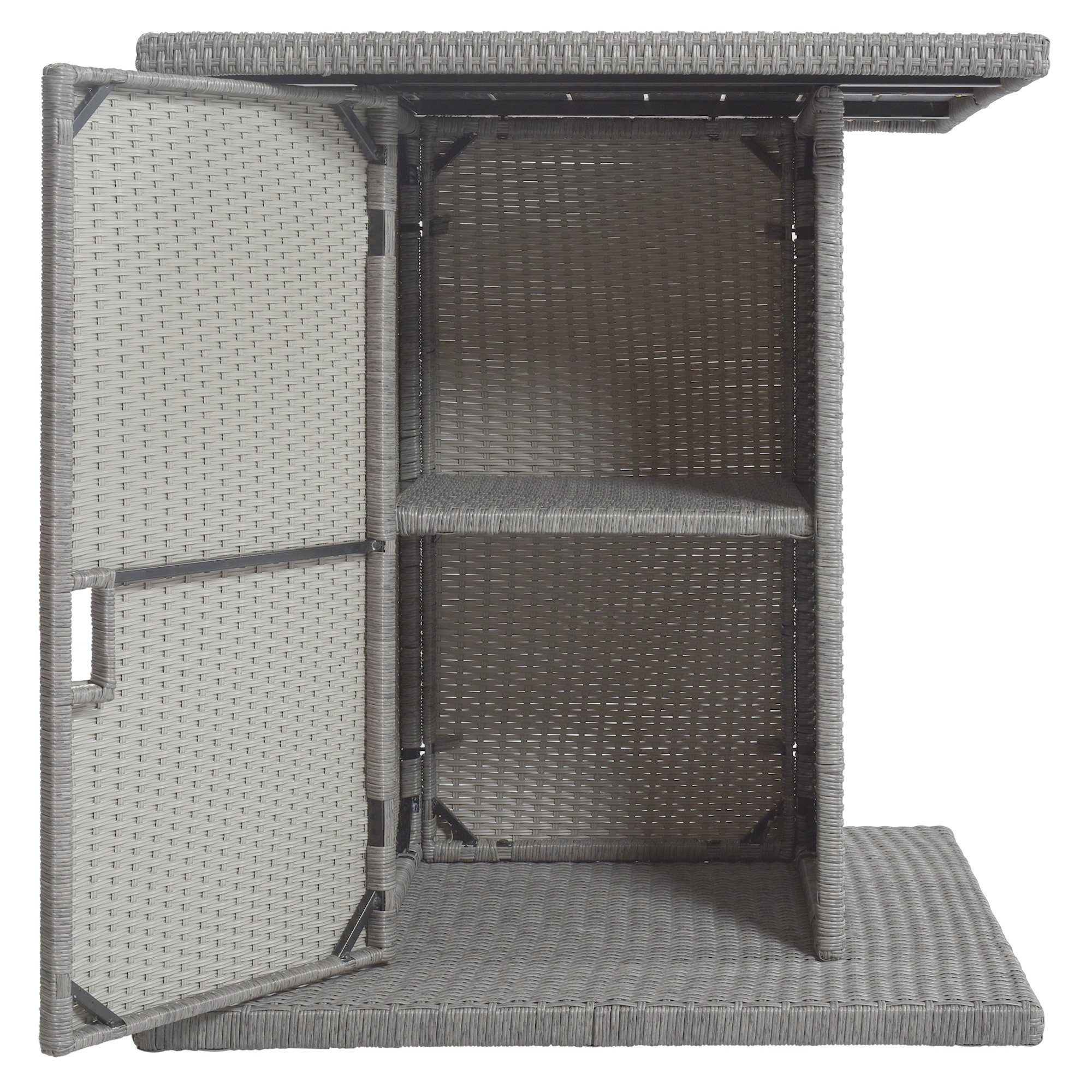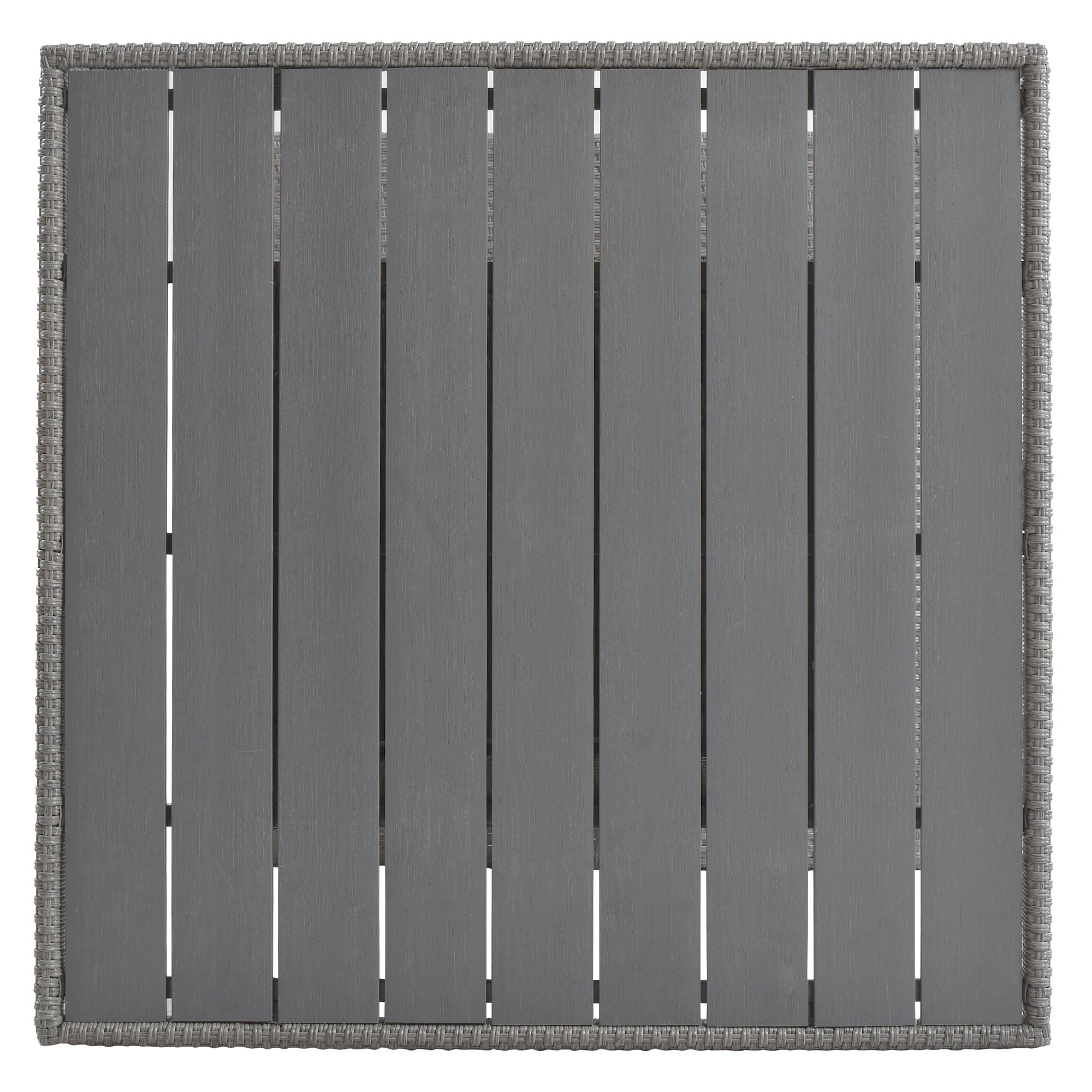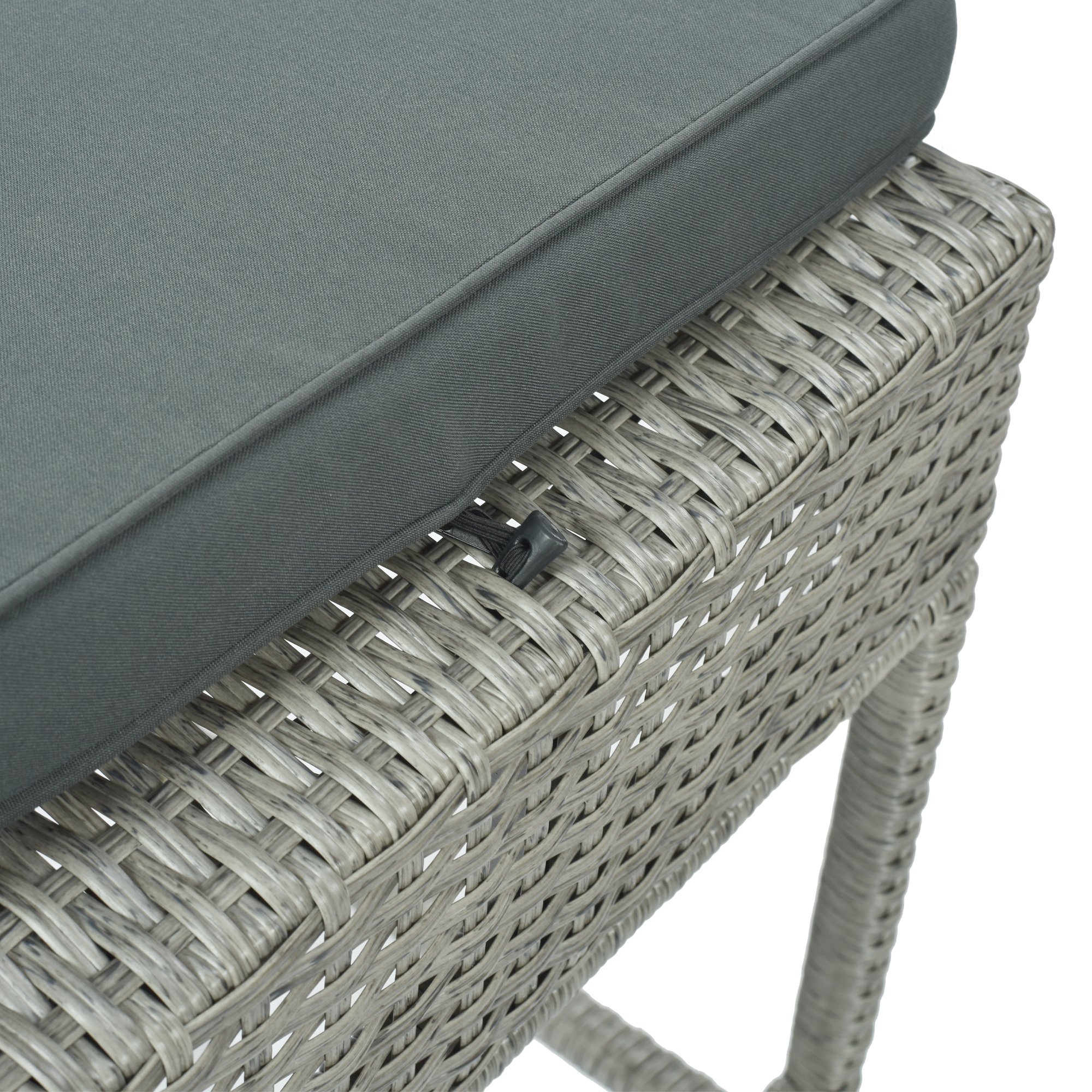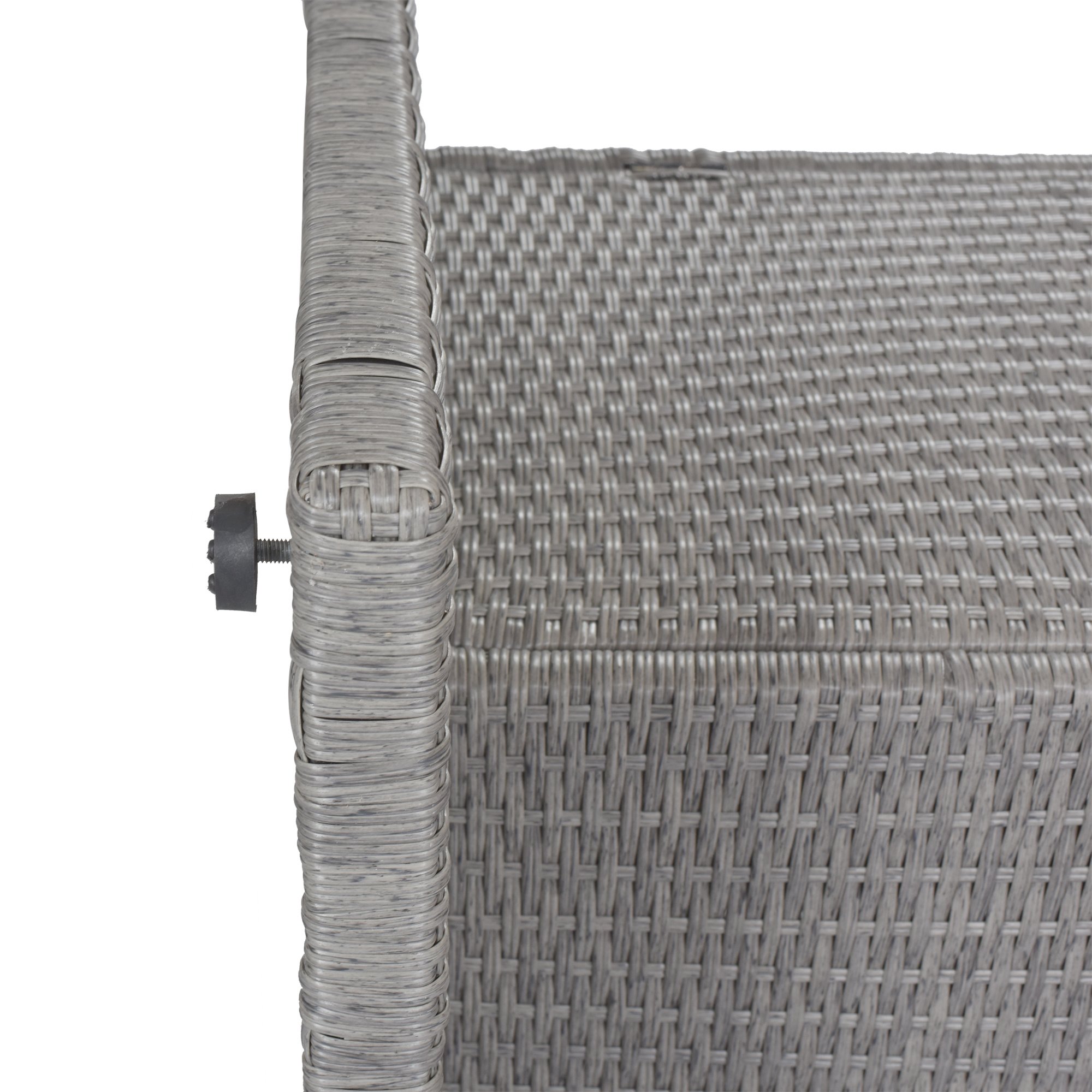 Material | Powder Coated Steel, PE wicker, plastic tabletop, Polyester, Sponge (1.7lbs/cu.ft) |