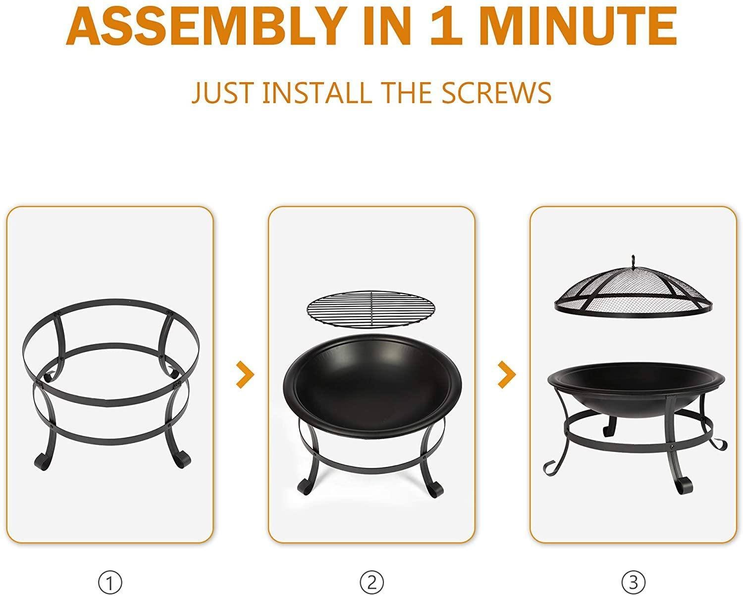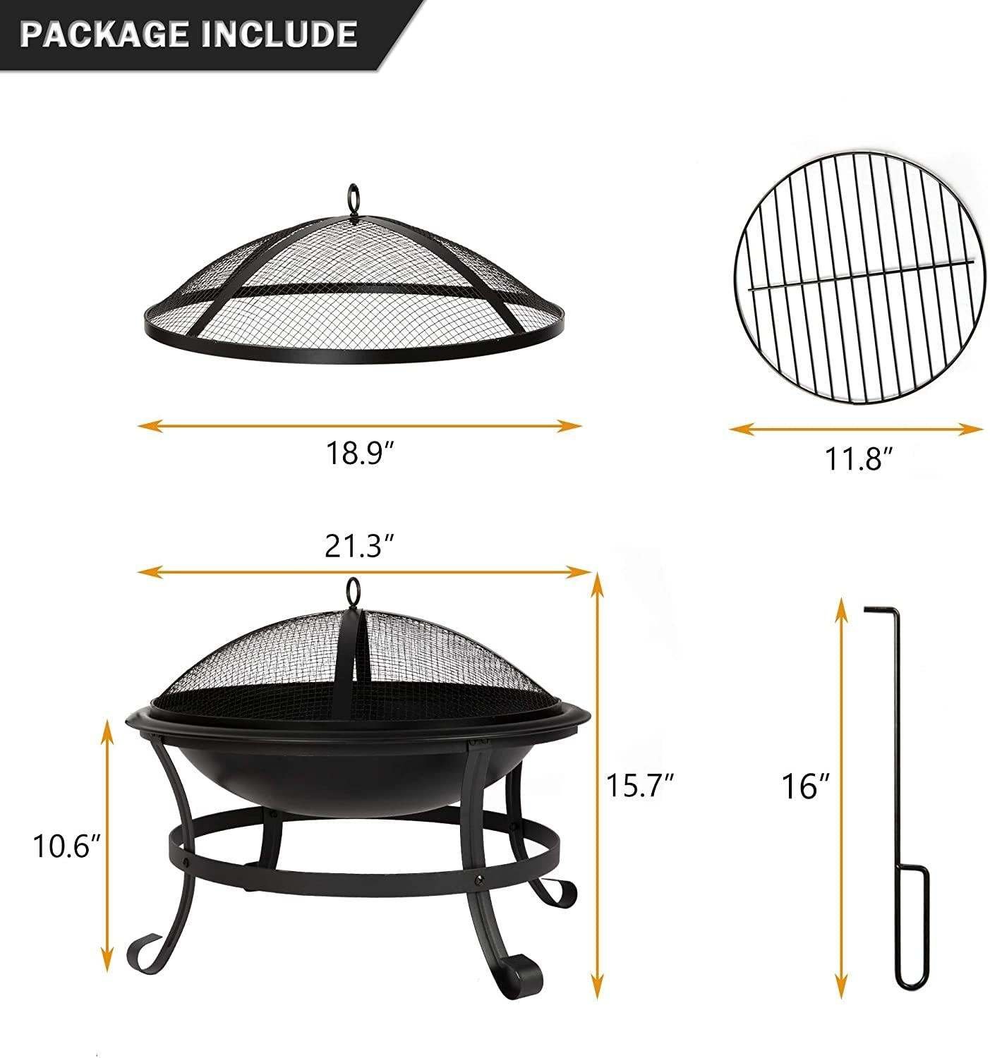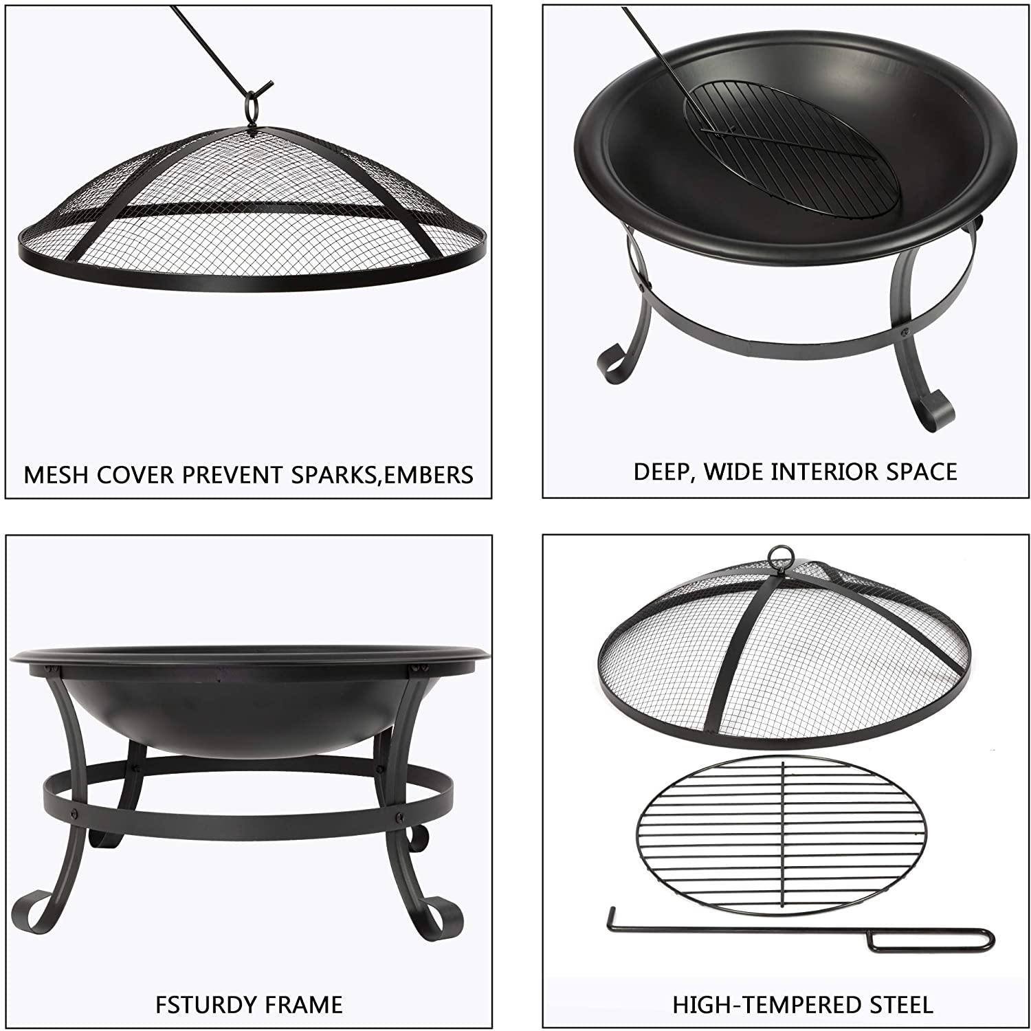 Home > Bosonshop 22'' Outdoor Wood Burning BBQ Grill Firepit Bowl w/Spark Round Mesh Spark Screen Cover Fire Poker Patio Steel Fire Pit Bonfire for Backyard