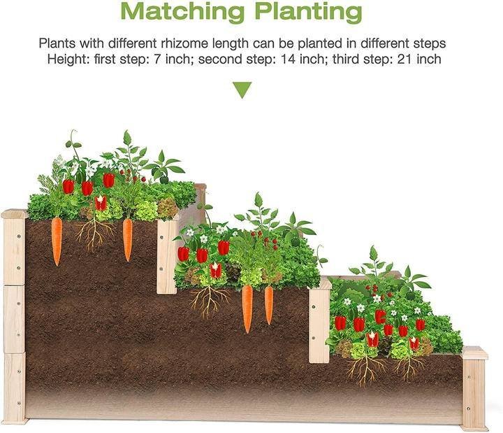 Multistep 3 Tier garden bed provide large standing garden with rich sense of hierarchy; suitable for plants of different root length.