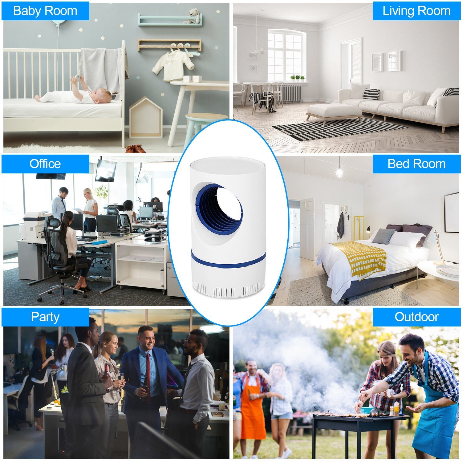 **Kill Mosquitoes Efficiently*:This product is to use on mosquitoes only. UV light bulbs emit 358nm wavelength. This wavelength has a fatal attraction of insect’s mosquito. Mosquitoes are attracted to the light source,and then they will be trapped into the mosquito tray under strong cyclone. Powerful cyclone will make the mosquito dehydrated and died.