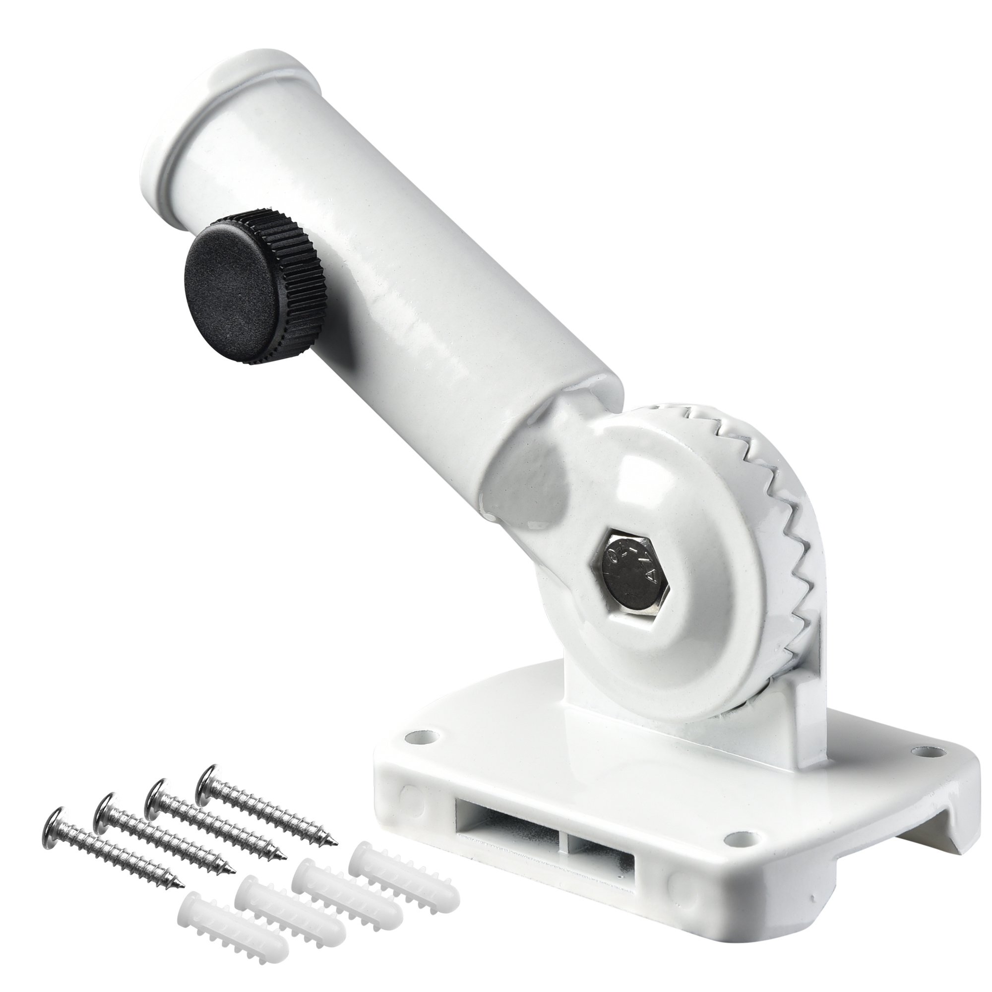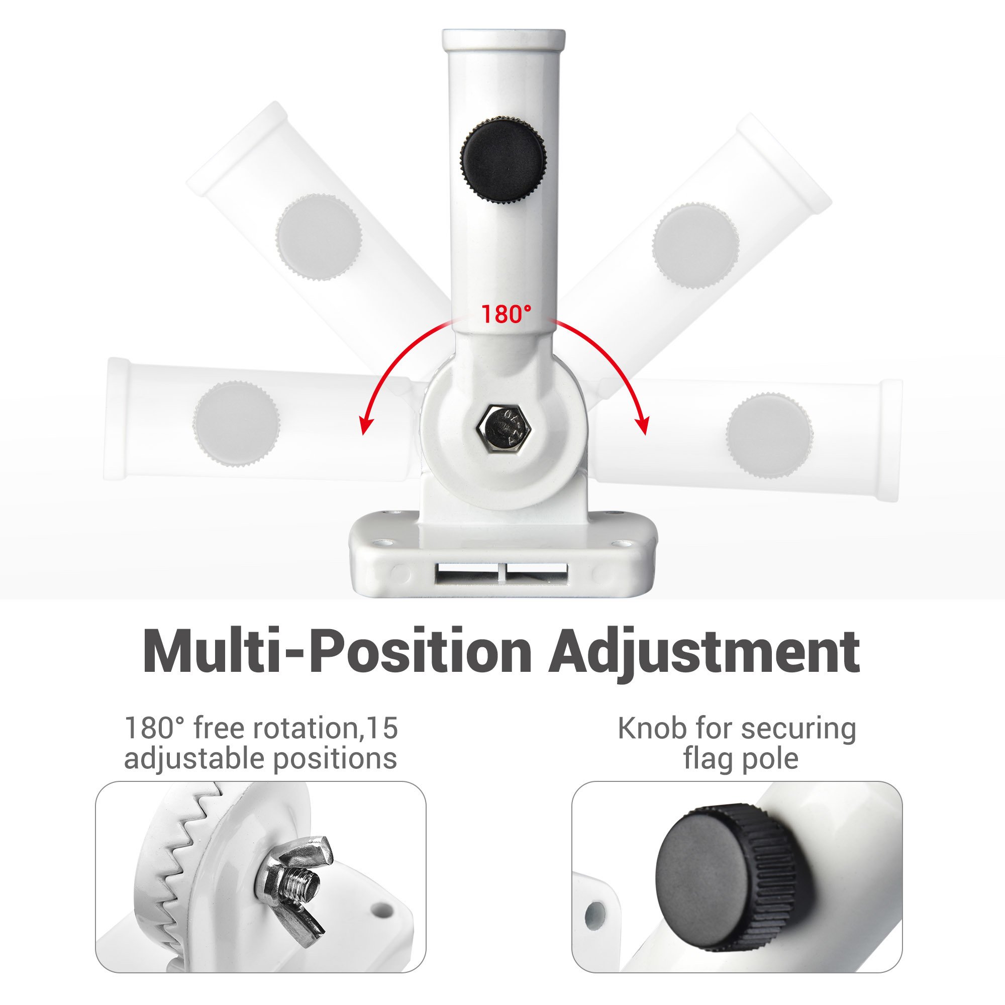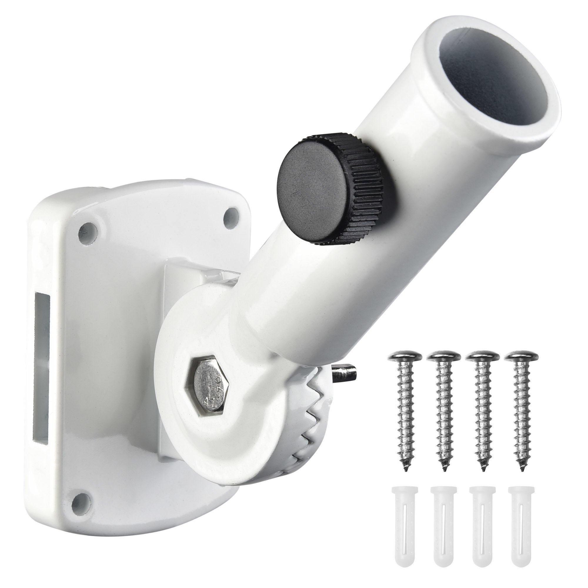 - 180 Degree Rotation - Wall Mounted Adjustable Flag Pole Holder with 1 1/16" diameter hole for inserting flagpole; support 180 degree free rotation for angle adjustment; which meets demands for fixing your flagpole in 15 different positions