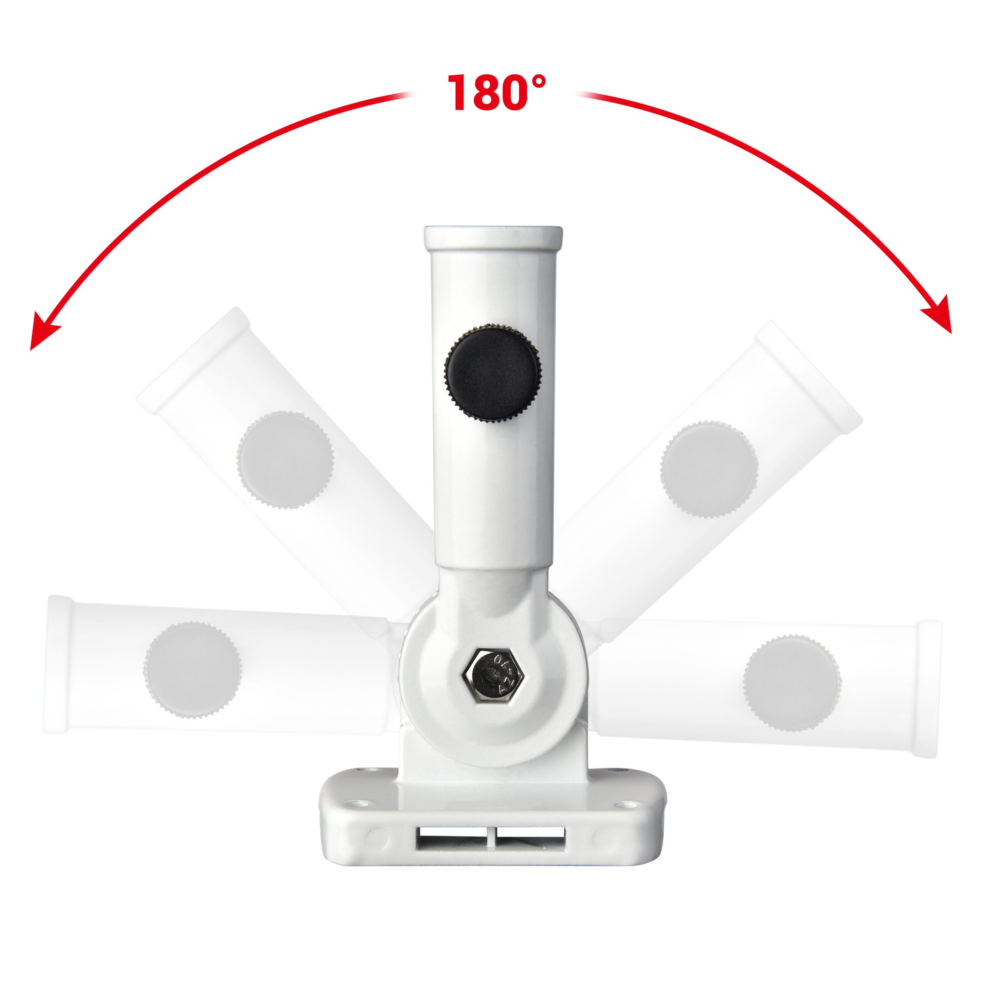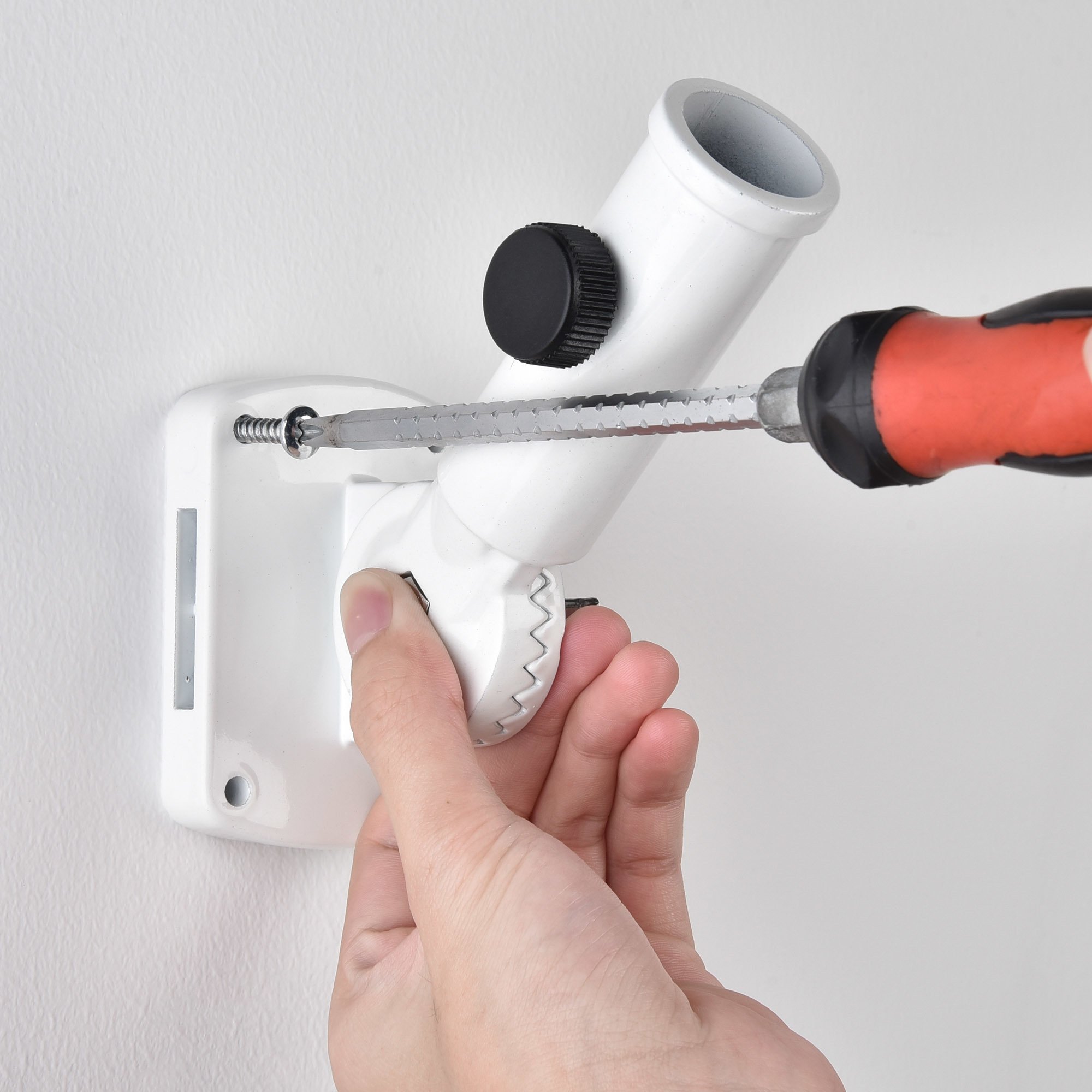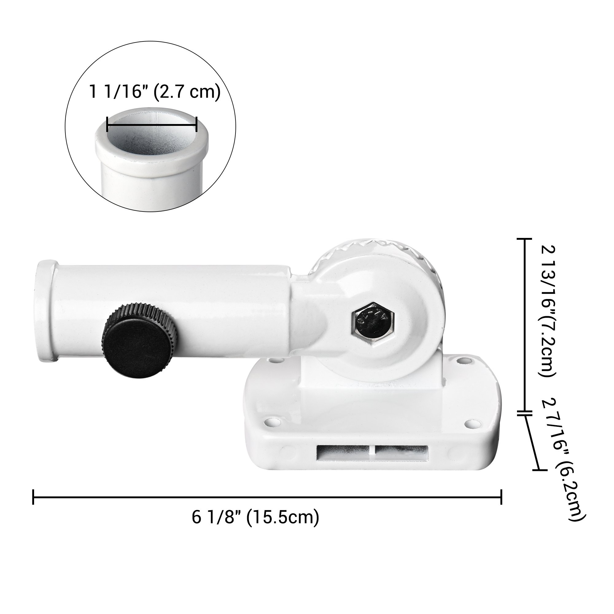 - 180 Degree Rotation - Wall Mounted Adjustable Flag Pole Holder with 1 1/16" diameter hole for inserting flagpole; support 180 degree free rotation for angle adjustment; which meets demands for fixing your flagpole in 15 different positions
