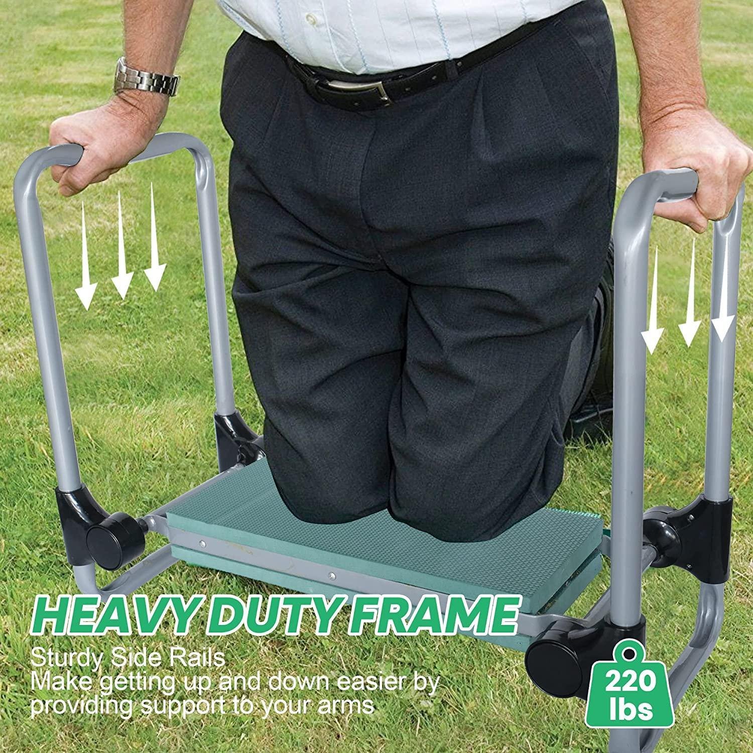 Ultimate Comfort: This garden kneeler comes with a soft EVA foam padding reduce painful pressure on your joints.It also prevents your clothes and pants from getting dirty when you're on your knees.