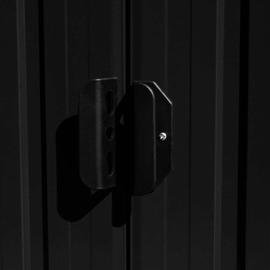 This storage house has vents both in the front and back; ensuring excellent ventilation. Its double sliding doors in the front allow easy entry and exit. Thanks to the galvanized steel construction along with a powder-coated finish; the tool storage shed is durable and strong; and won't corrode or be affected by adverse weather conditions.