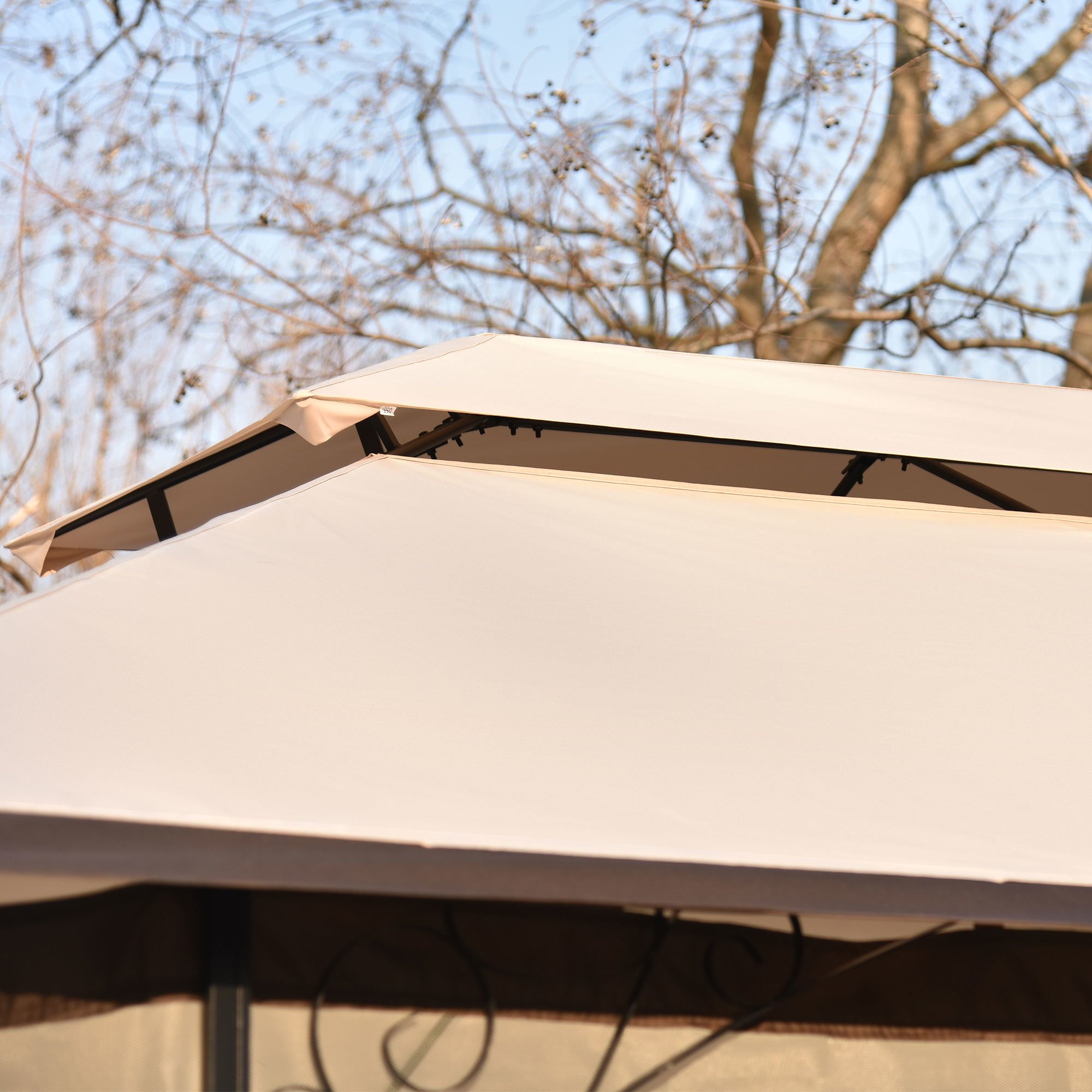[VIDEO provided] U_STYLE 13 Ft. W x 9.7 Ft. D Iron Patio Outdoor Gazebo; Double Roof Soft Canopy Garden Backyard Gazebo with Mosquito Netting Suitable